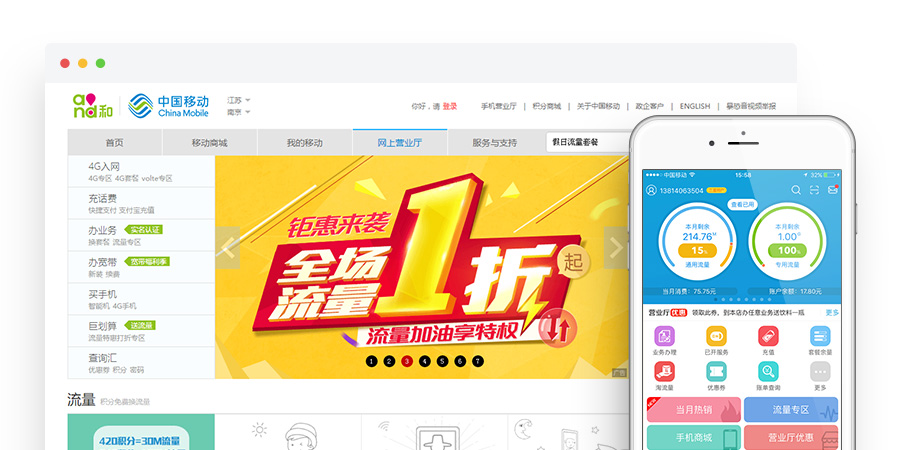 APP版采用原生态+H5页面结合的形式, Android和iOS多版本并存,面向大众用户立足运营商服务营销。